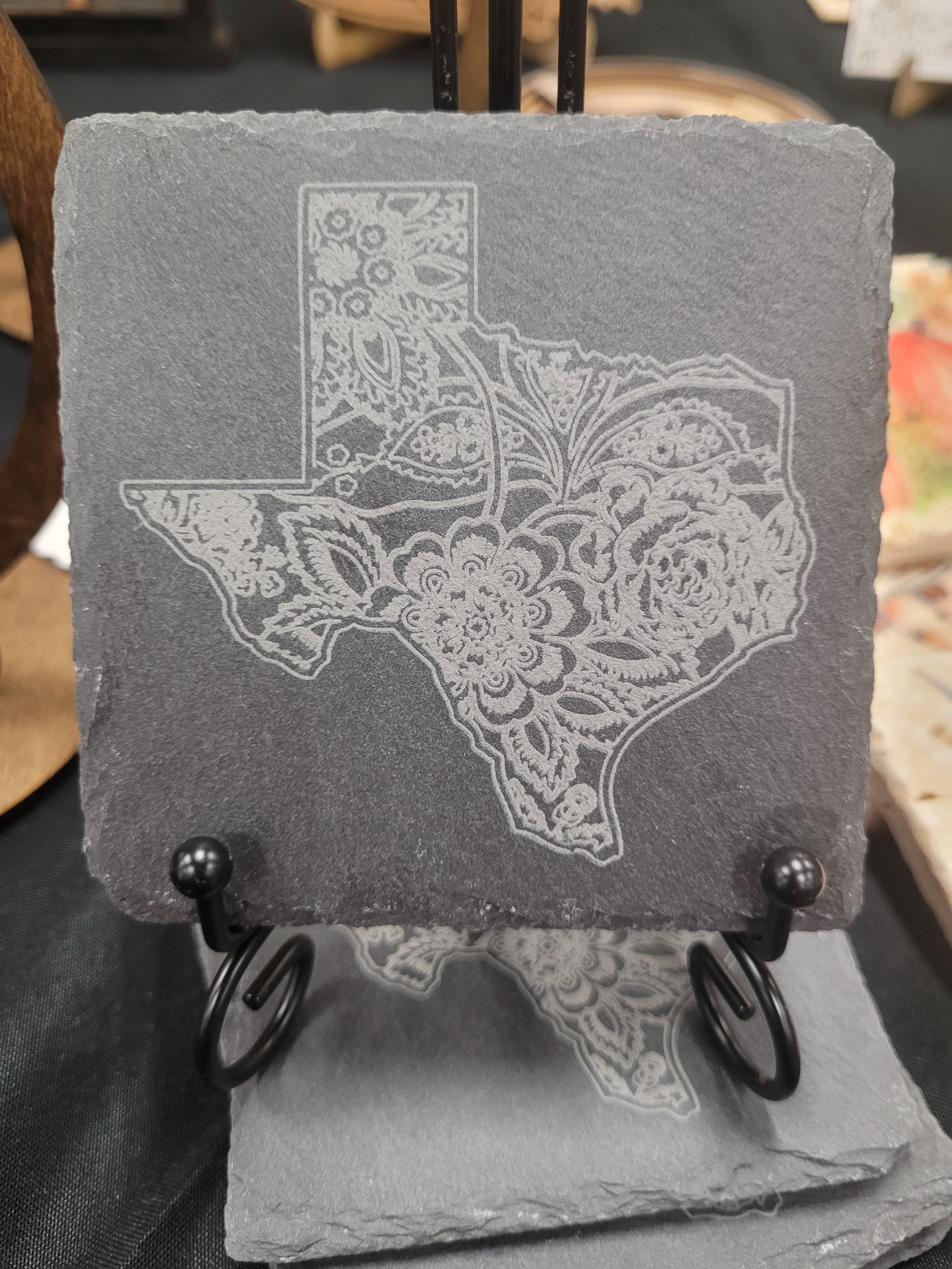 A perfect gift - our exquisite Texas slate coasters. Each coaster is made from stunning charcoal slate, hand-crafted for perfect engraving. Here are the details: