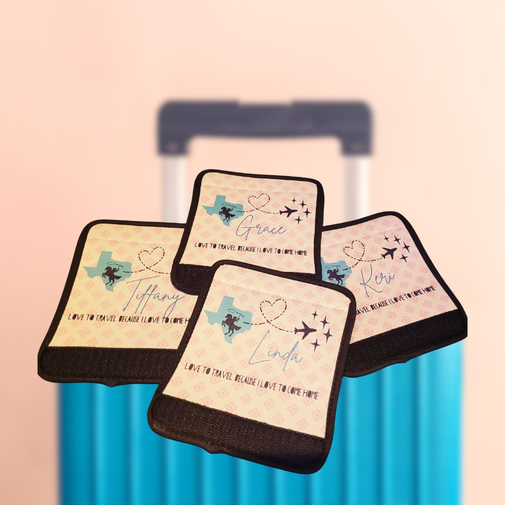 Travel smarter and spot your bag faster with a custom neoprene luggage handle cover designed for comfort, durability, and easy identification. Made from soft yet strong neoprene and secured with durable Velcro, this cover wraps easily around your luggage handle for a snug, secure fit.