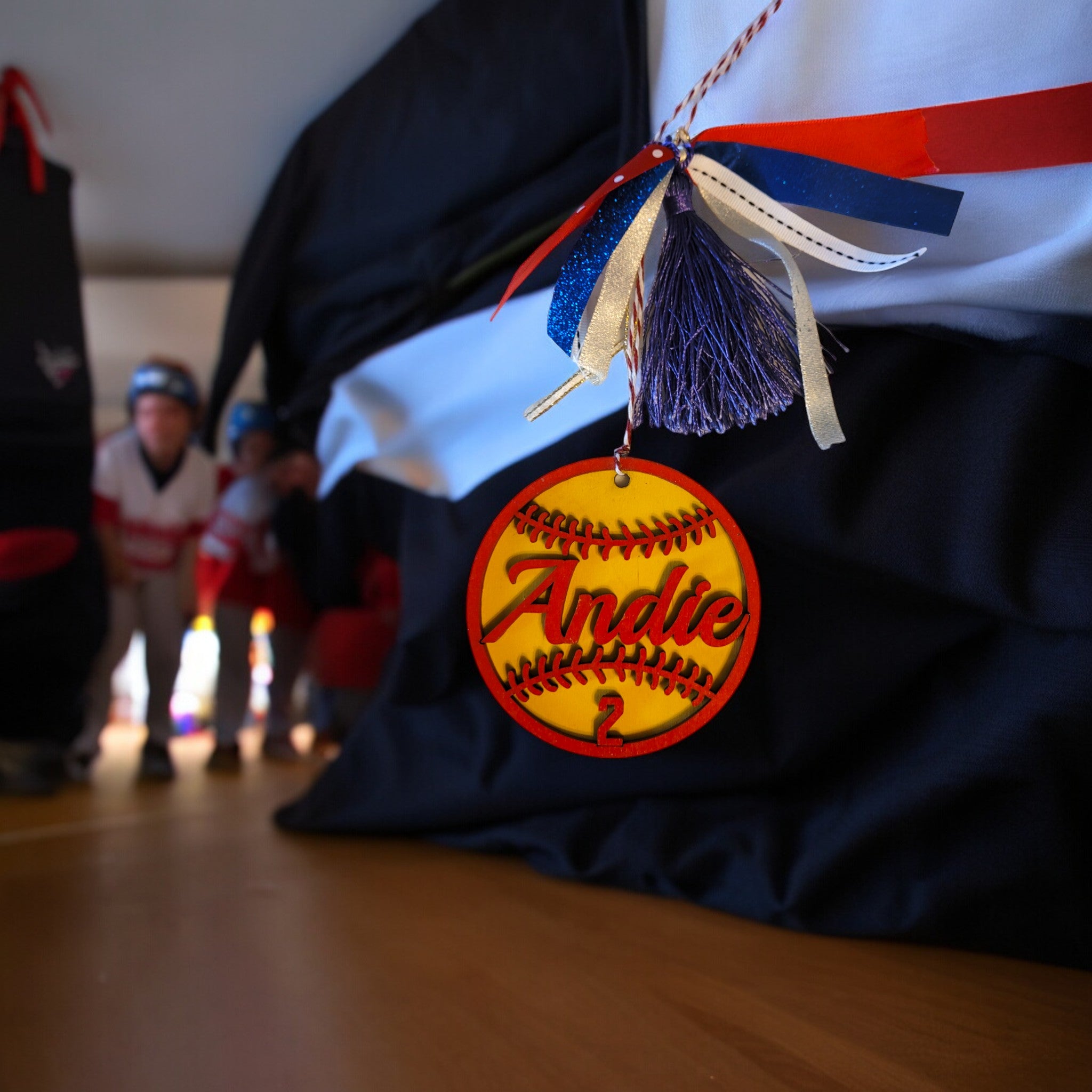 🥎 Crafted with Precision: Our softball-shaped name tag is meticulously created from beautiful Baltic Birch wood. The precision ensures a clean, rustic look that captures the essence of the game.